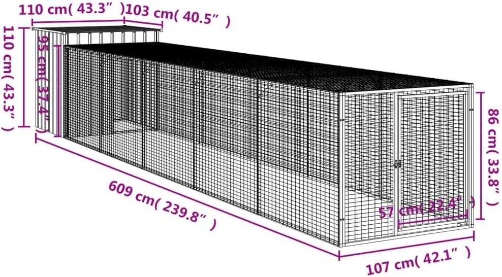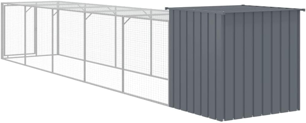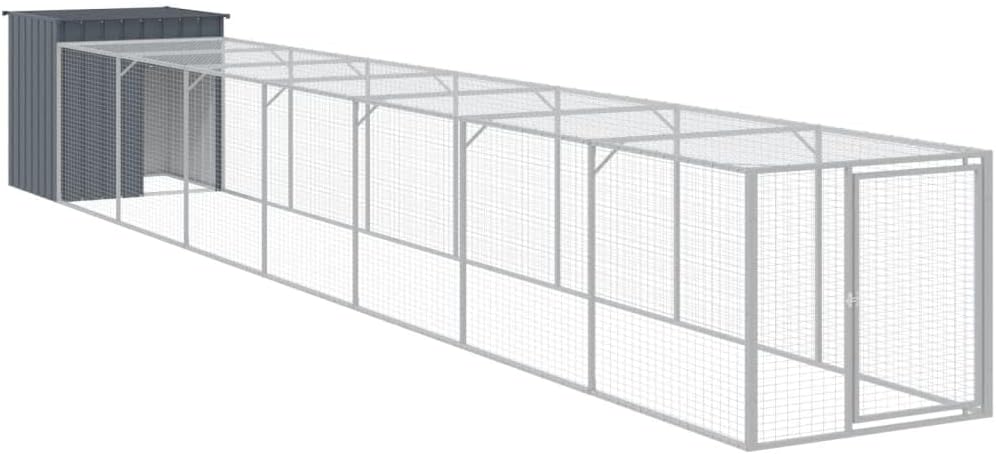 This Large Anthracite Chicken Coop with Run provides a solid and spacious space for your chickens, made especially for outdoor use. The cool industrial design and weathered look not only make it attractive but fit nicely in your garden, offering a cozy and safe area for your feathered friends.Built to Last: The chicken coop is made from solid galvanized steel, so it can handle daily use and outdoor conditions.Weatherproof Style: With its weather- features, this coop keeps chickens safe from the elements, ensuring they’re comfy in any weather.Good Airflow: The mesh design allows for great airflow, reducing the risk of overheating and creating a healthy space for chickens.Spacious Space: The coop offers plenty of room for chickens to play and exercise, which is crucial for their health and happiness.Easy to Clean: The materials used make it simple to keep clean, helping maintain hygiene for your chickens.Color: Anthracite Shape: RectangularMaterial: Metal SteelFinish: Weathered Indoor/Outdoor: Outdoor OnlyCover Included: NoRoom: OtherDimensions: 239.8 x 43.3 x 43.3 in (W x L x H)Brand: vidaXLDelivery Contains: 1 x Chicken cageAssembly Required: YesSKU: 3189090EAN: 8720845917050