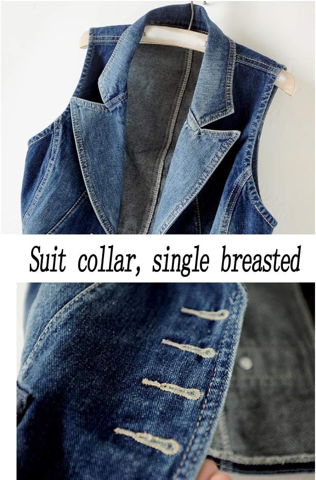 Women's plus size denim vest sleeveless jean vest jacket, women's single breasted denim vest, womens blue denim waistcoat jacket Fabric: denim cotton, comfortable, soft and breathable. Features: - Suit collar, zipper, single-breasted - Suitable for any occasions - Spring, autumn, summer evenings Size: S: Bust: 33.86", Hem: 29.92", Length: 20.08"; M: Bust: 35.43", Hem: 31.49", Length: 20.08"; L: Bust: 37", Hem: 33.07", Length: 20.47"; XL: Bust: 38.58", Hem: 34.65", Length: 20.47"; XXL: Bust: 40.16", Hem: 36.22", Length: 20.87". Note: 1, We have detailed size chart in the product picture, please choose the item according to our size chart. 2, A slight color difference due to the difference in the display. 3, Please allow 2-3 ( 0.78 - 1.18 inch ) error, because of the manual measurement.