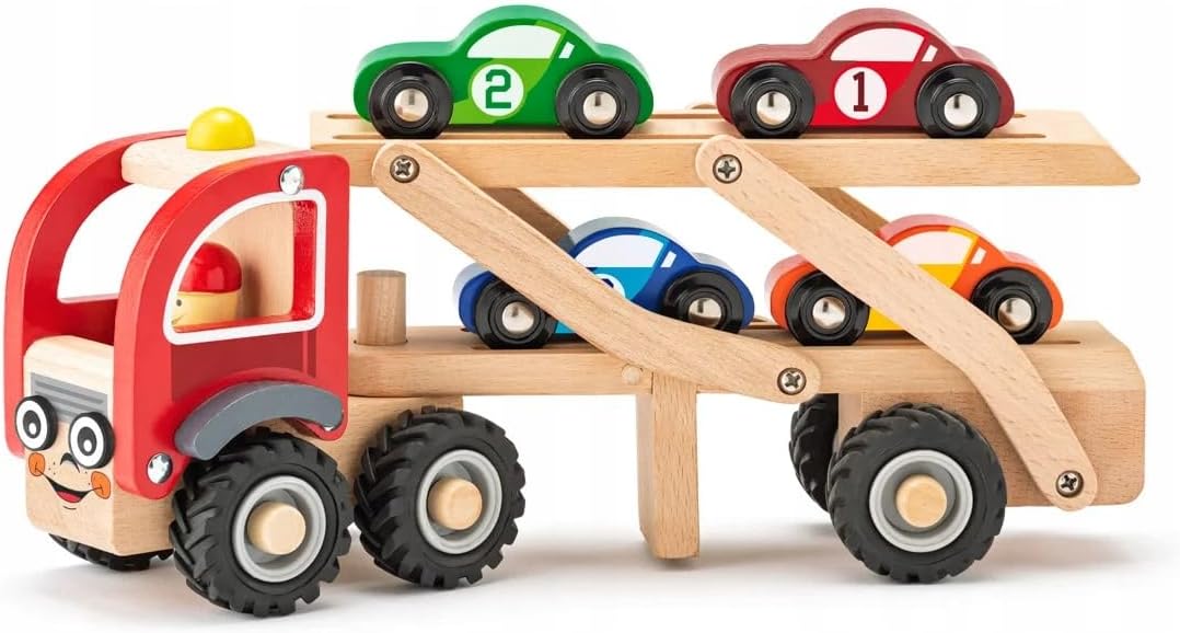WOODEN BATH WITH 4 RACES The Lelin wooden racing tow truck is a toy that brings children lots of fun and possibilities for creative play. The tow truck is made of durable wood. The tow truck has a platform with a ramp on which runners can be placed. The platform is generally adjustable to allow easy loading and unloading of cars. Playing with a wooden tow truck with runners develops imagination, creativity and manipulative skills in children. Kids can pretend to be race team drivers and run their own races in the yard or in the hall. It is a wonderful fun that encourages the development of social skills and participation in group games. Dimensions of tow truck folded: 28 x 8 x 15 cm Age: 3+