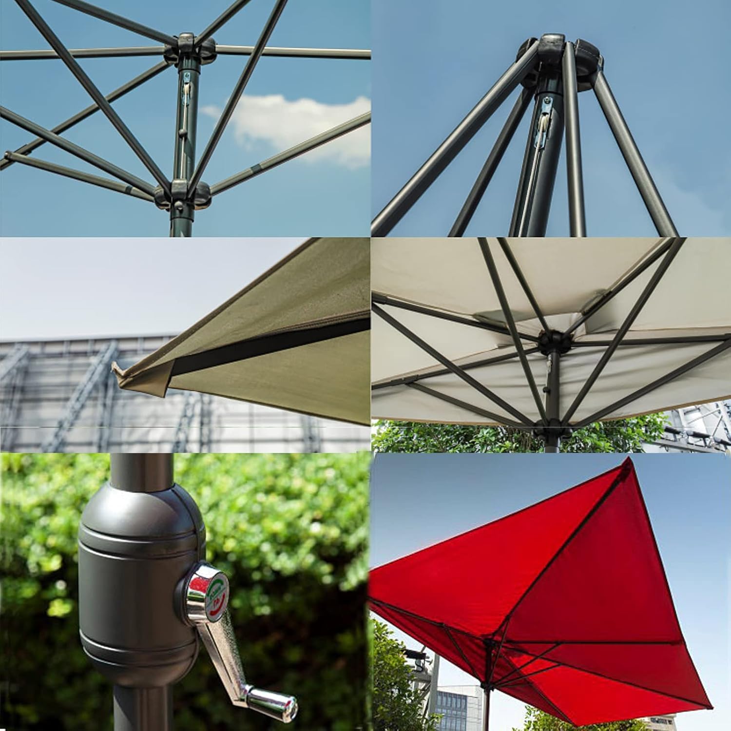 Patio Umbrella Half Round Outdoor Umbrella with Crank for Wall Balcony Door Window Sun Shade Rectangular Patio Umbrella Outdoor Market Umbrella Garden Table Umbrella with Crank System Sun Shade Umbrella > Product Description:> name: umbrella> Umbrella fabric: Oxfordn cloth> Frame material: iron frame with antis-rust treatment> Function: sunshade, windproof> Opening methode: hand crank bearing open> Color: red, beige, white, tan, brown> Specifications: 2.5x1.2M (98x47INCH)> Umbrella: 5 bones> Weight: 3KG> Parasol without base> Red and beige umbrellas are not rainproof, while tan, white, and brown umbrellas are light rain protection.> Each product is shot in real scene, re may be some visual deviation due to light and or reasons.{/p}