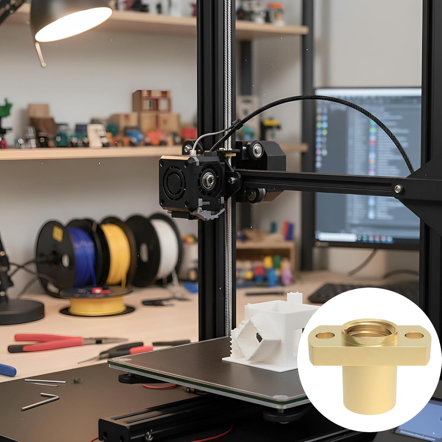 Color: Yellow Material: Brass Size: Nut: 0.6 x 0.9 x 0.4 in / 15 x 22 x 11 mm,Hole center distance: 0.62 in / 16 mm,Cylinder diameter: 0.39 in / 10 mm Package Includes: 10 x Printer Accessories Note: - Please refer to the measurement. Tiny measuring error is allowable in normal range. - There might be a little color difference due to the monitor, camera or other factors, please refer to the physical item.