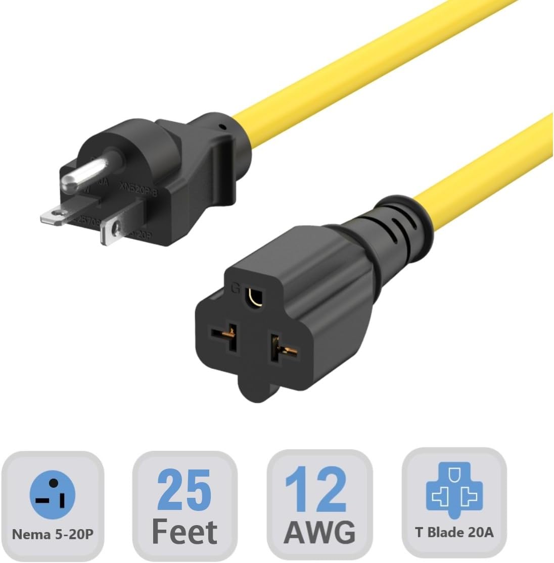 25-Feet/7.6 Meter Nema 5-20 Extension Cord,Nema 5-20P to 20 Amp T blade Adapter Cord, 20 amp male to female extesnion cable,Nema 5-20P 20amp male to double T blade Female, Nema 5-20P to 5-20R 5-20P to 5-15R, 5-20P to 6-20R, 5-20P to 6-15R nema 20R Comb 15Amp & 20Amp AC extension cable20 amp male to 20 Amp (Com 15 amp) double T-blade adapter cord converter build with SJTW 12AWG heavey duty copper ac power cableNEMA 5-20P 20AMP Male Plug to NEMA 5-15/20R 20R Comb AC power extension cordNEMA 5-20P 20AMP Male Plug to NEMA 6-15/20R 20R comb AC extension cableNEMA 5-20P to 5-15R, 20a to 15a extension cord,T-blade adapter convert nema 5-20P plug 20a to 15amp household socket Nema 5-15R or nema 6-15R 15 amp outlet combCompatibility:NEMA 5-20P 20Amp male(125V) to 5-15R 15Amp Female(125V) AC extension cableNEMA 5-20P 20 Amp male(125V) to 5-20R 20 Amp Female (125V) 20 amp extension cordNEMA 5-20P 20 Amp male(125V) to 6-15R 15 Amp Female (250V) AC power extension cableNEMA 5-20P 20 Amp male(125V) to 6-20R 20 Amp Female(250V) AC Power extension cord