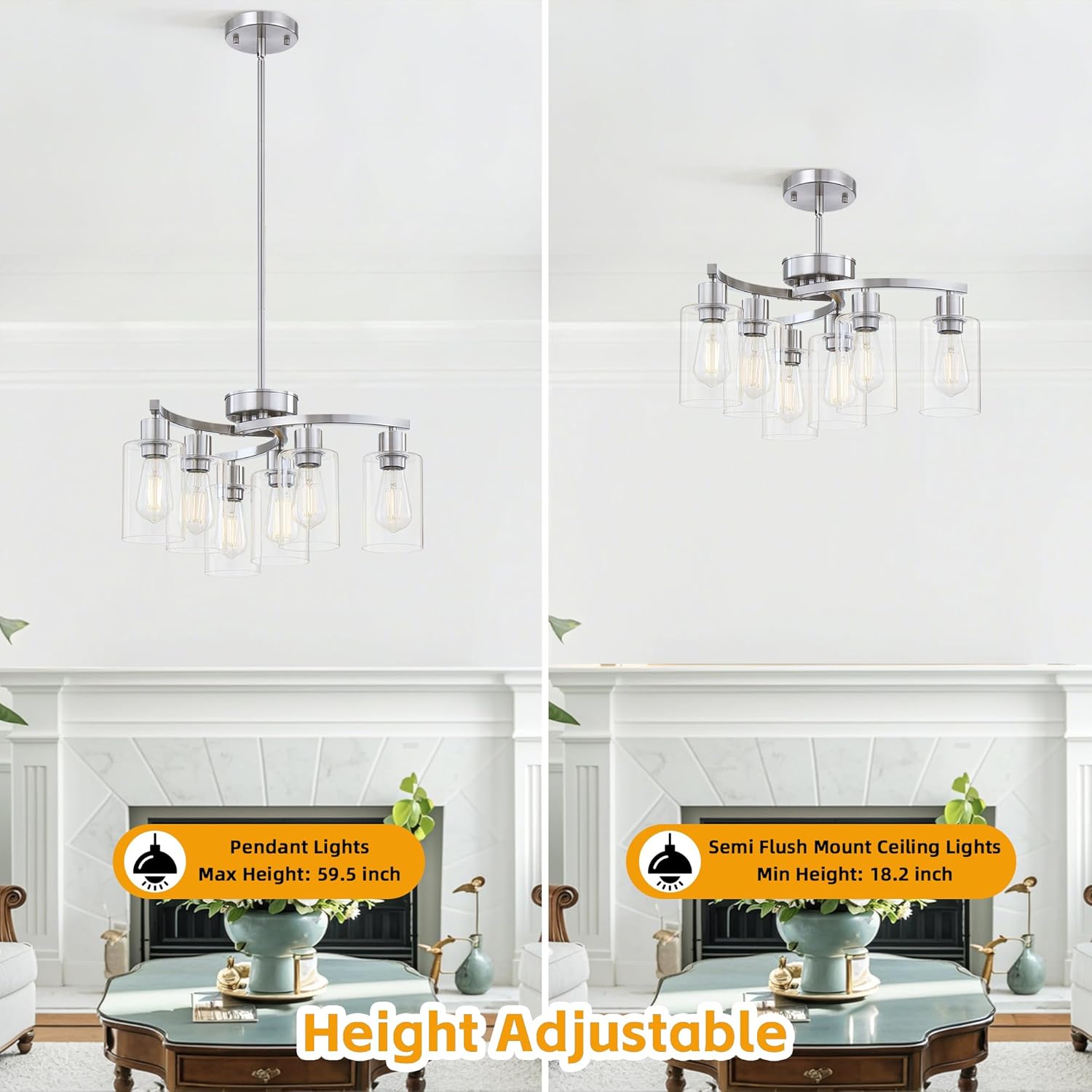 | Other Special Features of the Product | 6-Light Chandelier, Adjustable Height, Suitable for Flat, Sloped Ceilings |