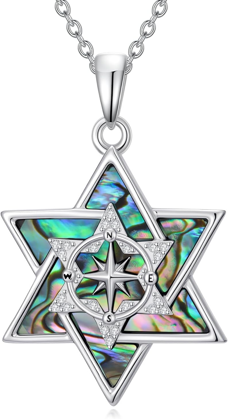 POTOPYY Star of David Necklace S925 Sterling Silver Star of David with Abalone Shell Pendant Necklace Jewelry Jewish Hexagram Jewelry Christian Necklace Gifts for Women Mother's DayPOTOPYY Brand: POTOPYY Jewelry have a good command of both "fashion" and "unique" in various occasion. POTOPYY Jewelry not only emphasizes the beauty of every woman but expresses their personality, we hope star of david necklace can bring you a good mood Professional Designer Words:It's the most popular and fashionable star of david necklace, decorate with colourful abalone shell. The captivating beauty and profound symbolism of our Sterling Silver Star of David Necklace, a treasure that celebrates the power of unity, spirituality, and the rich heritage that connects us all.Product Material: S925 Sterling Silver hand-polished craftsmanshipAbalone ShellPackage Includes: 1x S925 Sterling Silver Star of David Necklace1 x Exquisite POTOPYY Gift Box1 x Polishing Cloth Maintenance and Repair: 1. Not close to chemicals 2. Don't touch the water 3. Try to avoid hitting 4. Cannot use exercising 5. Please clean with cotton cloth Please Note: 1. There might be 2-3% difference according to manual measurement. 2. The pictures are from actual product, there might be differences of color and texture due to different display monitors.