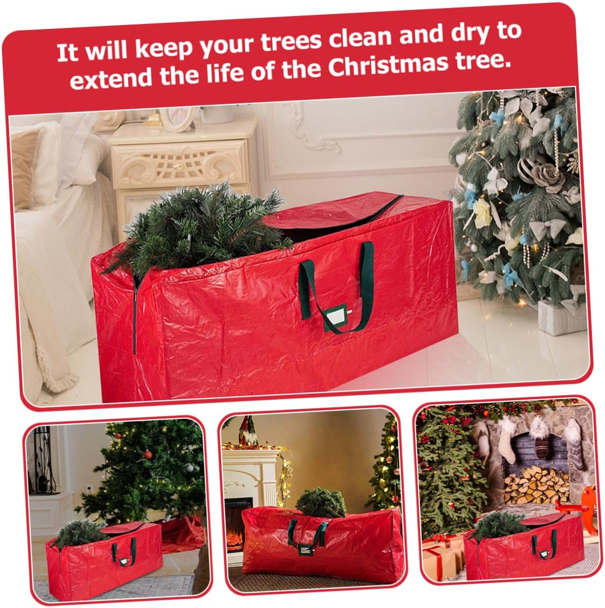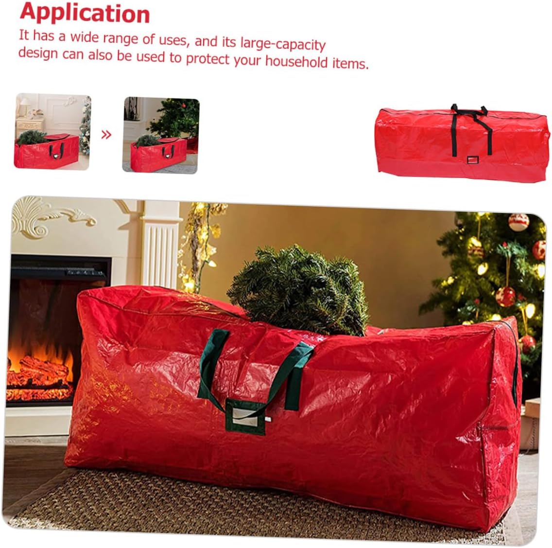 Package List 1 x Storage Bag Characteristics - Size: 165.10X76.20X38.10cm/64.88X29.95X14.97in -Product Info:Christmas tree storage bag - Material: PE - Color: Red - The Xmas tree storage bag is also water-resistant, which means it will keep your tree clean and dry waterproof tree bag. - It is well-made of premium and sturdy materials, safe and practical for using time. - It is easy and convenient to use, and easy to store when not in use Household Bag. - Full length zipper for easy stowing of tree, cloth, and other duty tree bags for storage. - It is also to store bulky items, such as house-moving, college dorm carrying use, long journey, out-of-season quilt and clothing and other items tree bags.Goods Informationwaterproof tree can store not only the Christmas tree, but also your other items which you need to put into one bag.Bag for Holiday Tree This is a storage bag, which can help you store your Christmas tree well for the next year.storage bags with is a great storage tool