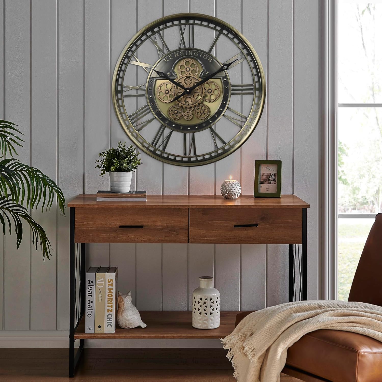 | Additional Features | Large Display, Silent Clock, Tempered Glass Lens, Wall Clock with Real Moving Gears |