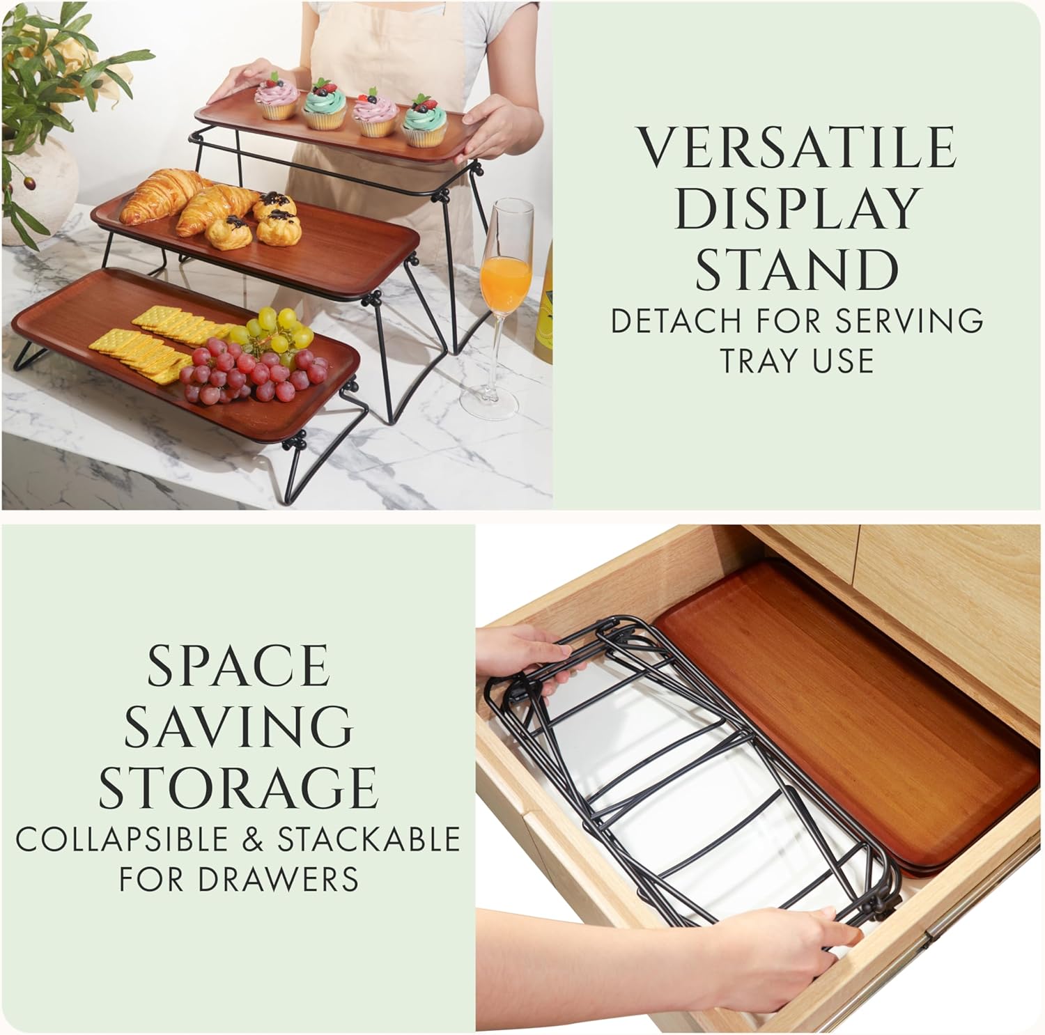 | Special Feature | Collapsible three tier tray, Lightweight 3 tiered dessert stand, Stackable cookie trays for parties |