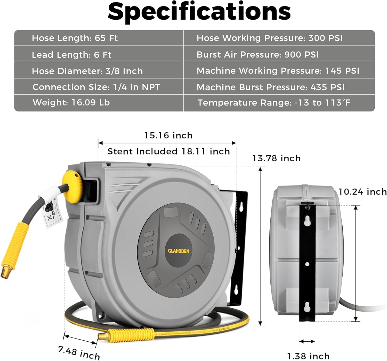 | Included Components | Hose, air blow gun, expansion bolts, quick coupler |