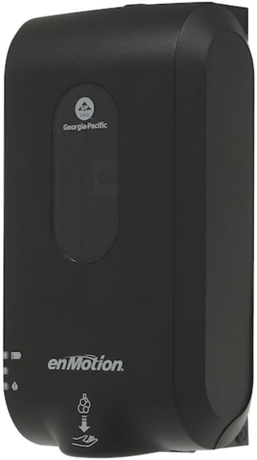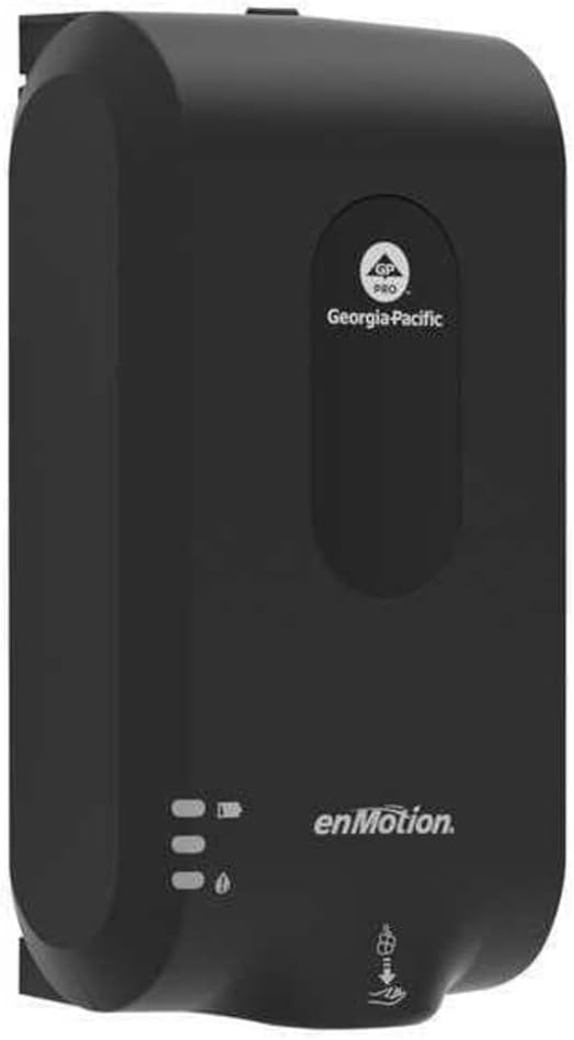 Soap/Sanitizer Dispenser, Color Black, Mount Type Wall, Product Type Soap/Sanitizer Dispenser, Material Plastic, Series EnMotion(R) Gen2, Finish Matte, Compatible Manufacturer Part Number 42334, 42336, 42338, 42714, 42715, 42818, 42819, Refill Size 1,000 mL, 1,200 mL, Operation Mode Automatic, Power Source Battery, Batteries Included Yes, Overall Depth 11 3/4 in, Overall Height 4 in, Overall Width 6 1/2 in, Counter Hole Diameter Not Applicable, Maximum Countertop Thickness Not Applicable