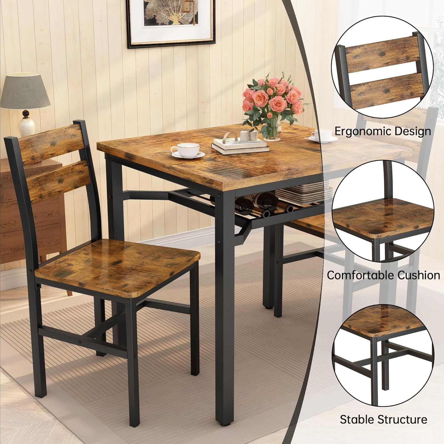 | Included Components | 1×Dining Table, 2×Dining Chairs |