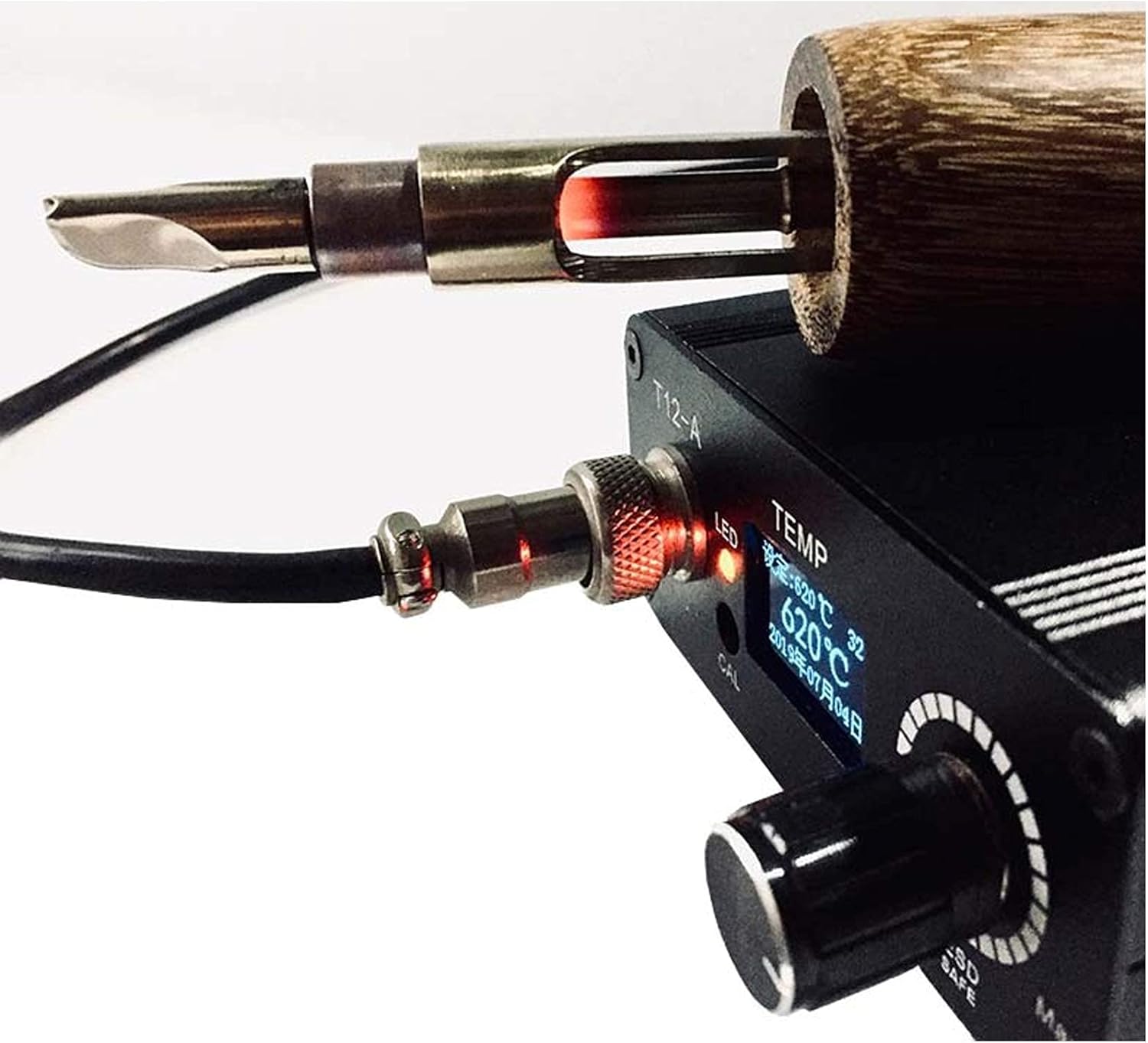 110v-220v Leather Electric Heating Press Tool, Hand-held Leather Trimming Machine, Leather Edge Machine 40-700℃ Adjustable Description: 1. The edge ironing machine is equipped with overcurrent protection circuit, digital display control, better control of temperature 2. Temperature range: 40-700℃, suitable for all kinds of side oil 3. The handle is held in a low position and feels comfortable; the built-in heating element is safe and has less heat loss 4. More than 20 personalized settings, power-on password lock, password lock temperature, vibration switch sensitivity setting, low voltage alarm, etc. 5. Simple operation, long press for 3 seconds, start to use after the beep 6. Input voltage: 110-220V 7. M5 thread edge ironing head Package: 1 * Leather Electric Heating Press Tool