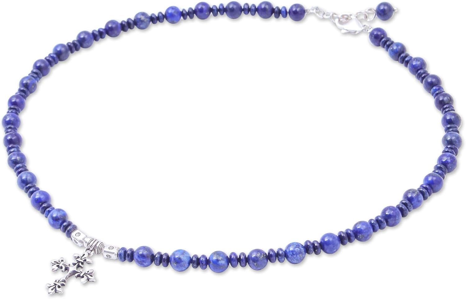 Novica works together with talented artists, artisans, and designers around the world to produce stunning, keepsake handmade treasures. Our mantra is to Spread Happiness, so rest assured - we’ll do everything we possibly can to ensure you’re a happy customer!About this item: A decorative silver cross dangles gracefully from the center of this beaded pendant necklace from Thailand's Tipa. Crafted from sterling silver, the cross is surrounded by Karen silver beads on a beaded lapis lazuli chain. The necklace is finished with a lobster claw clasp and an adjustable extender chain in sterling silver.About our Artist: 'I'm Tipa Intaranan, a jeweler from Northern Thailand. I grew up in a small rural town and really wanted to explore the world. I was blessed with the opportunity to travel the world as part of an air crew for 30 years. Ive been able to see so many places and meet different people and cultures around the world. I found my passion for jewelry art and teamed up with my family, who worked with silver. This has allowed me to combine my Thai identity with my life experiences to create an amazing collection of accessories. I didn't think I'd have a chance to create my own designs and it's been very fulfilling to see women look gorgeous, confident and elegant in my jewelry. I believe everyday outfits can be eye-catching and stylish with the right accessories.'...