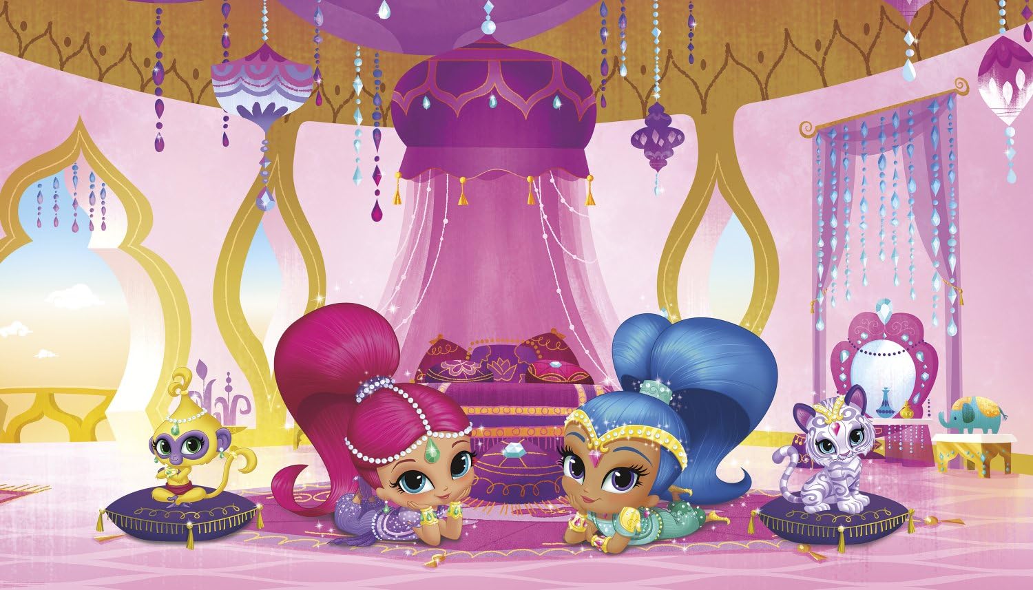 Product Description Become a genie-in-training with our shimmer and shine genie palace XL wallpaper mural! featuring twin genie sisters shimmer and shine along lounging with their magical pets nahal and tala in their palace, inspire any child's imagination with this larger than life wall decor! capture the magical moments from this hit series by simply activating each of the seven panels with water. Next, apply each panel side-by-side directly onto the surface. From the Manufacturer Since 2006, RoomMates, the world’s largest manufacturer of peel and stick decorative products, has enabled consumers across the globe to transform their walls and other room accessories quickly, effortlessly and affordably.RoomMates offers the largest, most varied (and we like to think “coolest”) selection of Wall Decals and Peel & Stick Wallpapers that install, reposition and remove in seconds without ever leaving any sticky residue or damage to the surface. Our Peel & Stick StickTiles™ enable you to create a backsplash in minutes giving you the opportunity for a fun, fast, easy and always great-looking room/accessory make-over. Just Peel, Stick… Done! Turn an ordinary space, furniture or accessory into anything but ordinary with RoomMates.