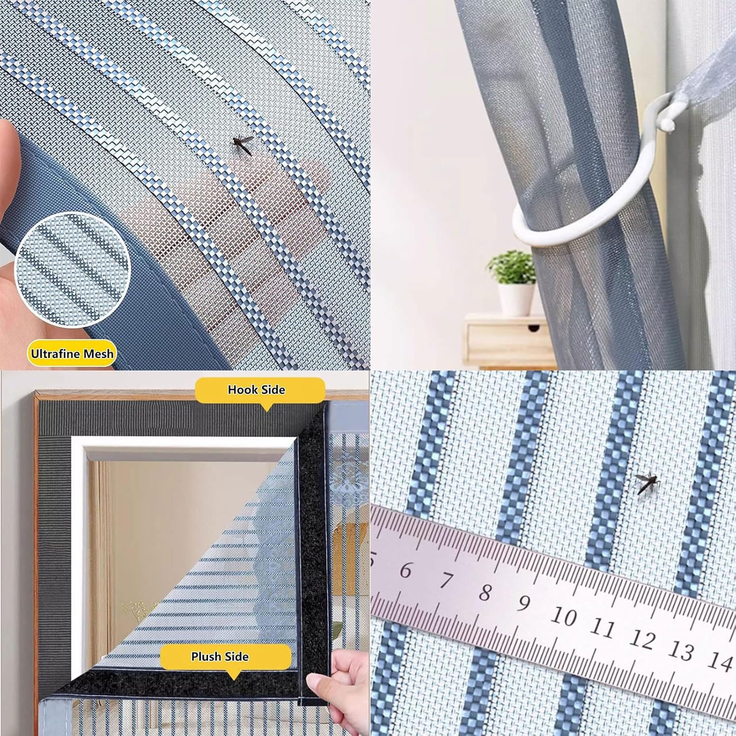 Name:Magnetic Screen Door,Hands Free Screen MeshMaterial: Encrypted MeshColor: APackaging: Door Curtain + Velcro + HookMeasurement Method:Size Selection:The dimensions listed are for the door curtain. Due to varying door frame sizes,Due to the varying sizes and thicknesses of door frames,we recommend measuring the inner frame (excluding the door frame) for a more accurate door curtain size selection.Calculation Method:Inner frame width + 6cm or more, inner frame height + 3cm or more will determine the door curtain size you need!(If you are unsure of your dimensions, please send us your inner door frame dimensions and we will recommend a door curtain size.)Installation Method:4cm wide Velcro on the top2cm wide Velcro on the sidesApplicable Door Frame Materials: Wood, Plastic, Metal, Glass, Ceramic Tile, Marble(Do not purchase if the door frame is rough or uneven.)Notes:1. Actual color may vary slightly due to lighting and screen differences.2. Due to manual measurement, please allow slight deviations in measurements.3. If you have any questions, please contact us by email.