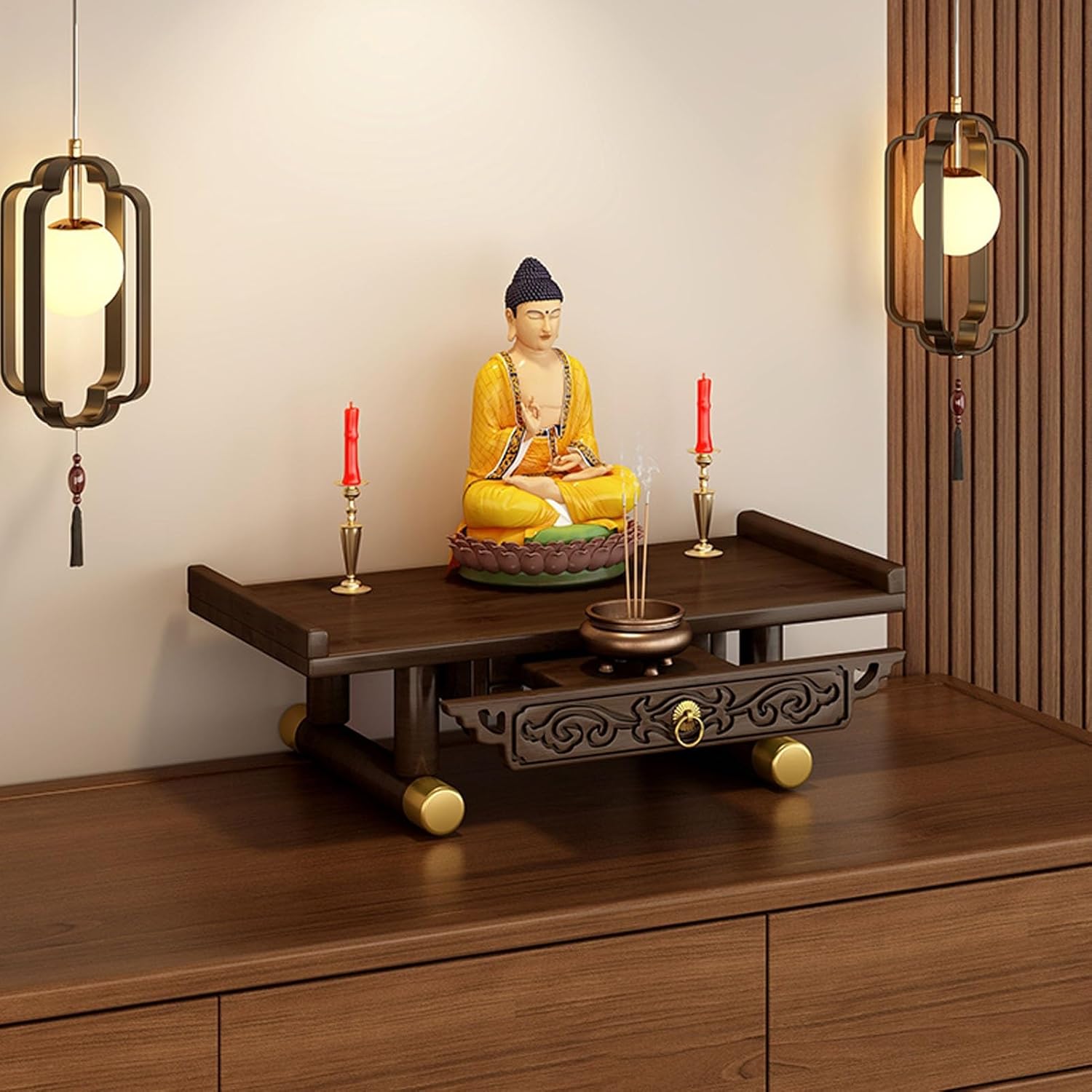 The YQMHEZ Buddhist table is carved in a simple style, with sandalwood lingering around it, carrying a pious heart.It is solemn in silence, and as time goes by, it remains as solemn as ever.Product Specifications:Name: wall-mounted Buddhist shrine altar cabinet household altar tableMaterial: bambooSizes:39X26X13CM/15.4X10.2X5.1IN , 66X26X13CM/26X10.2X13INUsage: meditation table, worship table, small side table, candlestick table, display table, ritual table, portrait pooja table, prayer table etc.Warm ReminderDimensions are manually measured; a 1-3 cm difference is normal.Due to monitor settings and lighting, the actual color may differ. Refer to the real product for accuracy.