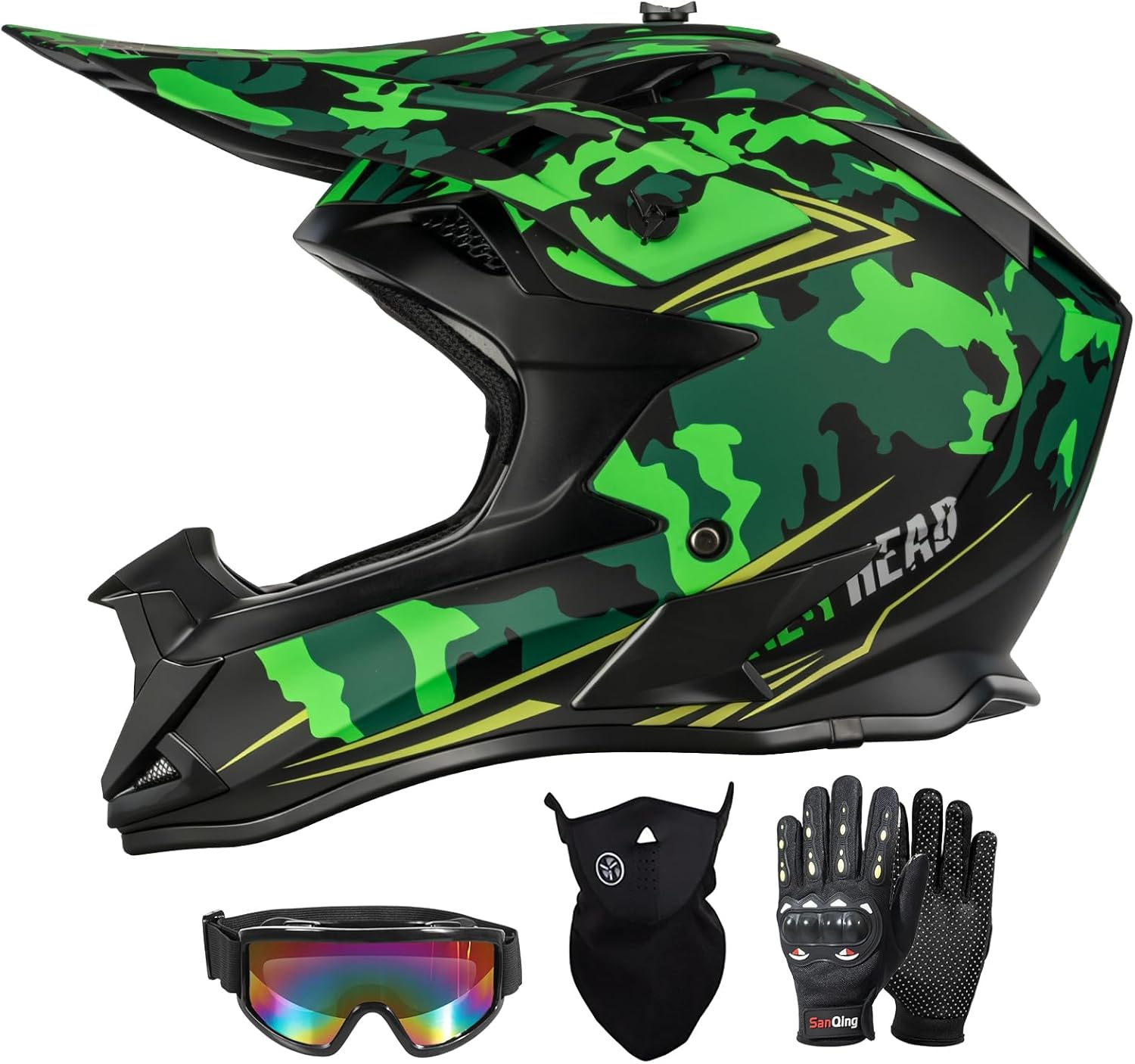 SPARK Adult Motocross Helmet Dirt Bike Helmets Full Face Motorcycle Off-Road Mountain E-Bike BMX MX ATV Helmet (with Gloves Goggles Mask) 4Pcs Set, DOT Certified