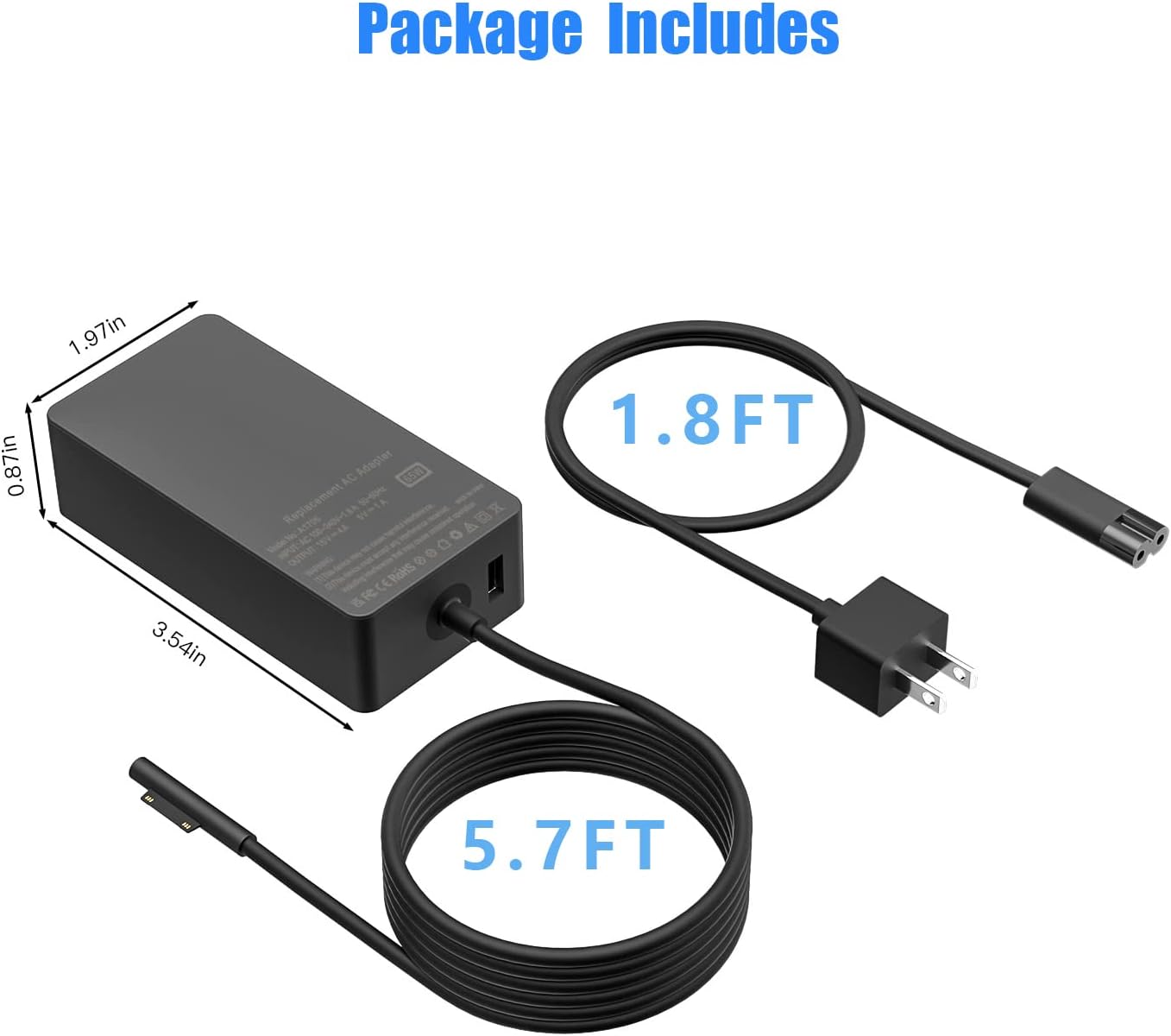 | Compatible Devices | Microsoft Charger, Microsoft Surface Charger, Microsoft Surface Pro 3/4/5/6/7/Go/Tablet, Surface Charger 65W/44W/36W/Model 1706, Surface Pro Charger |