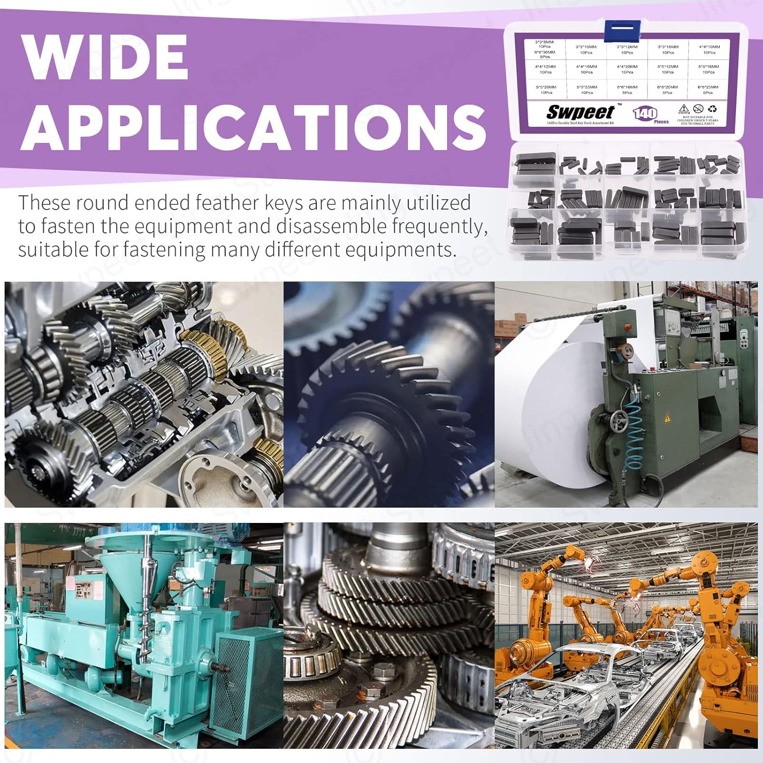 ๐ฅ Swpeet 140Pcs 16 Sizes Carbon Steel 3mm 4mm 5mm 6mm Round Ended Feather Key Parallel Drive Shaft Keys Set Key Stock Assortment for Fasteners Mechanical Industry ๐ฅ WHY CHOOSE US? ๐ฏ 1, Nice selection, A perfect assortment of needed parts. ๐ซ We have prepard 16 Sizes meet various needs and requirements for you.140 pieces are large enough that will keep you going for months or even years.You don't have to go to a hardware store, It will help you save lots of time and energy. ๐ฏ 2, Premium Material ๐ซ Our Key Stock are Made of high quality Stainless Steel for stable and durable use.Exquisite craftsmanship, smooth surface. ๐ฏ 3, Very handy kit to have on-hand! ๐ซ Only needed a single key to install a new adapter and wheel onto the helm of Your project. But, at the price this set was going for, it just made sense to buy it and have it in the home for future potential use. It had the exact size Woodruff key in it that you needed. ๐ฏ 4, A Best Gift ๐ซ You can give this beautiful product as a gift to your loved ones and friends, they will love it. ๐ฅ Specifications: ๐ซ Color: As Shown in the pictue ๐ซ Material: High Quality Carbon Steel ๐ซ QTY: 140Pcs ๐ฅ Package Included: ๐ฅ10Pcs -------- 3x3x8mm ๐ฅ10Pcs -------- 3x3x10mm ๐ฅ10Pcs -------- 3x3x12mm ๐ฅ10Pcs -------- 3x3x16mm ๐ฅ10Pcs -------- 4x4x10mm ๐ฅ10Pcs -------- 4x4x12mm ๐ฅ10Pcs -------- 4x4x16mm ๐ฅ10Pcs -------- 4x4x20mm ๐ฅ10Pcs -------- 5x5x12mm ๐ฅ10Pcs -------- 5x5x16mm ๐ฅ10Pcs -------- 5x5x20mm ๐ฅ10Pcs -------- 5x5x25mm ๐ฅ5Pcs -------- 6x6x16mm ๐ฅ5Pcs -------- 6x6x20mm ๐ฅ5Pcs -------- 6x6x25mm ๐ฅ5Pcs -------- 6x6x30mm ๐ฅ Intotal 140Pcs