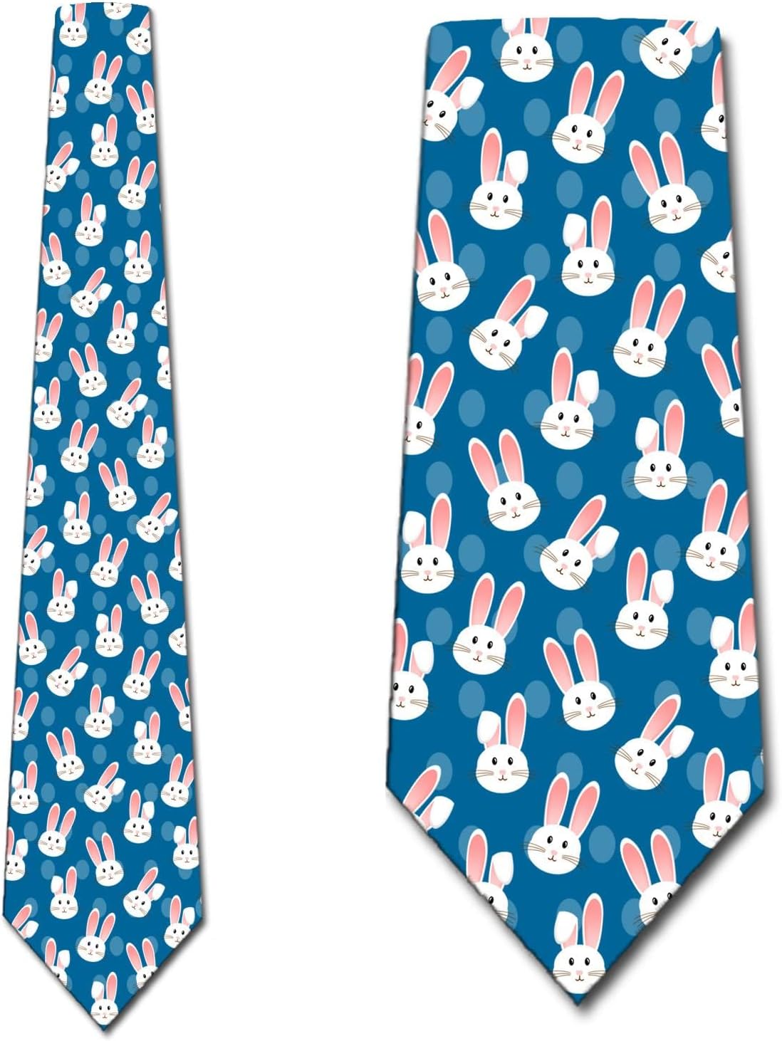 Hop into spring with style! This Easter themed necktie features a repeat pattern of the Easter Bunny and Easter Eggs contrasted against a blue background. This design is available in several other spring colors to ensure you have a festive accessory for any outfit!The Three Rooker Necktie CompanyThis original tie design is produced by The Three Rooker Necktie Company - the original creator of the novelty tie and is crafted in 100% microfiber to provide years of quality service.Your satisfaction is 100% guaranteed. In addition to Amazon's return policy, The Three Rooker Necktie Company offers lifetime support on all of their neckties.The Three Rooker Necktie Company is a family owned small business based in the USA. This necktie is proudly designed and printed in the USA.