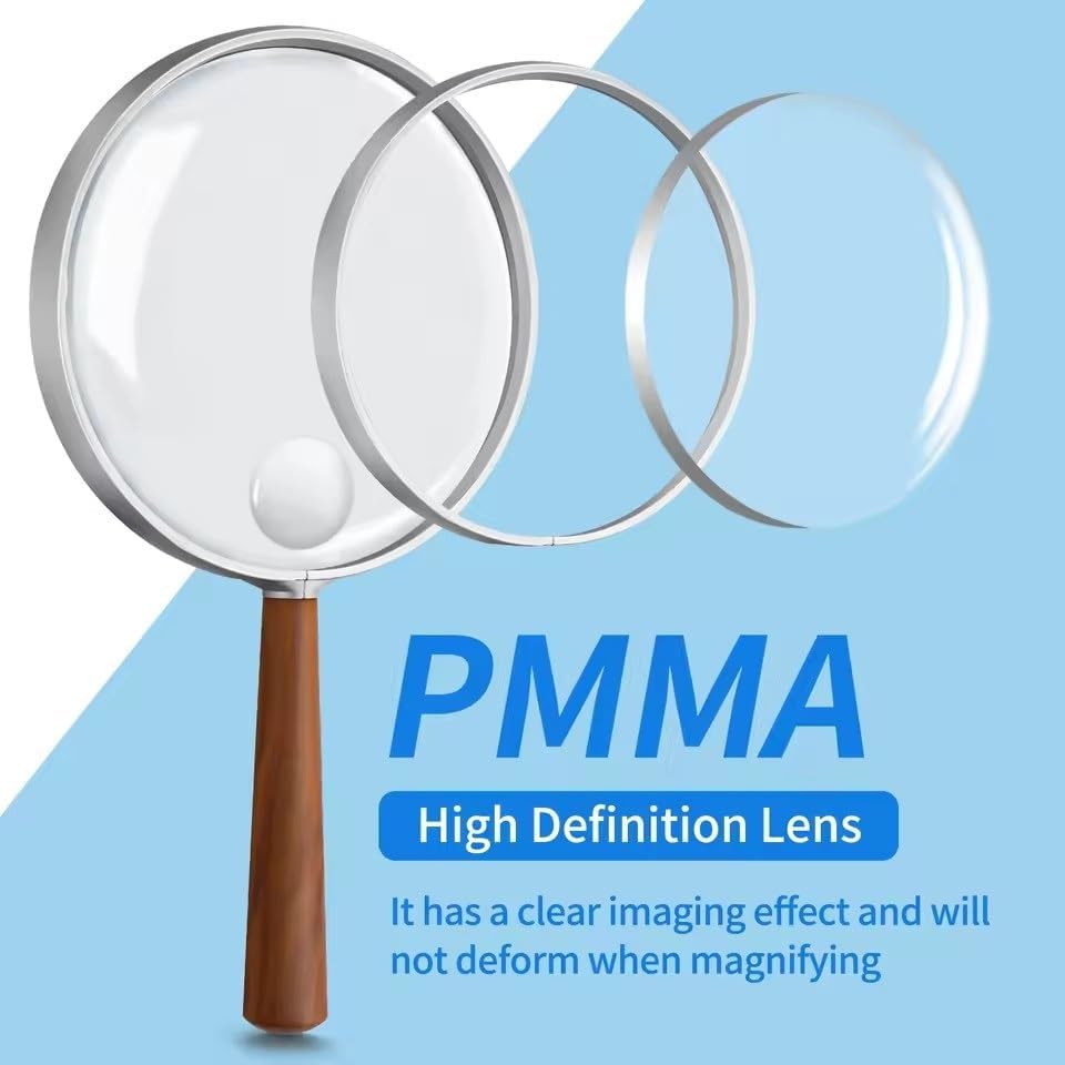 Specifications:Name: MagnifierWith Light Or Not: NoMaterial: PMMA, acrylichandle design: The handle is made of anti-skidMagnification: 10X and 20X optionsSize: 75mm, 90mm, 110mmPackage Includes:1x MagnifierNote:Due to the light effect, the actual color of the item might be slightly different from the color showed on the pictures. Please allow 1-2cm measuring deviation due to manual measurement.for inspecting stamps/coins, lightweight easy to hold (or hands-free ), with optional for dim environments, solving blurry vision troubles and boosting work/study/leisure convenience