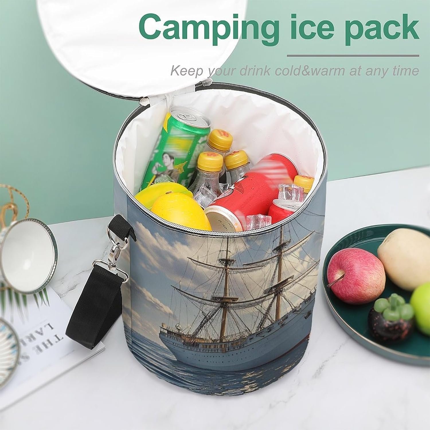 Keep Your Adventures Fresh and Mess-Free!Our Vintage Nautical White Ship Picnic Basket is designed to elevate your outdoor experiences. Whether you're planning a family picnic, a day at the beach, or a long camping trip, this bag ensures your food stays cold, your drinks chilled, and your belongings organized without any leaks.KEEPS THINGS COLD & INSULATEDConstructed with high-quality polyester and advanced insulation technology, this bag provides excellent thermal retention to protect your perishables.UNMATCHED PERFORMANCEThe leakproof design means you never have to worry about dealing with watery messes from melting ice packs again. The large, wide-opening top makes loading and unloading a breeze, and the heavy-duty zipper secures everything inside.COMFORT AND PORTABILITYWe've equipped this Vintage Nautical White Ship cooler bag with an adjustable shoulder strap to distribute weight evenly and reduce strain, even when the bag is fully loaded. The additional padded top handle offers a comfortable alternative for carrying.READY FOR ANYTHINGYour ultimate partner for adventure, this versatile tote is suited for a wide range of activities: camping, hiking, beach trips, barbecues, road trips, and daily grocery shopping. It's also a smart addition to your car emergency kit or disaster preparedness supplies.EASY TO STORE AND MAINTAINWhen not in use, its collapsible design allows for compact storage, saving precious space in your car or closet. To keep your cooler bag in great condition, we recommend hand washing or machine washing with mild detergent. Do not bleach or soak for extended periods. Allow to air dry thoroughly before storing.Size:10 x 11.8 inches / 25.5 x 30cmI wish you a pleasant shopping experience!